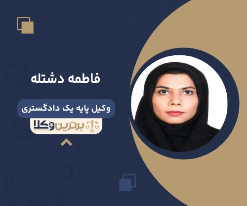 سرکار خانم فاطمه دشتله وکیل پایه یک دادگستری، عضو کانون وکلای مرکز، مشاور حقوقی، با بیش از 7 سال سابقه وکالات موفق می باشد، این وکیل تبحر و تخصص خاصی در حل دعاوی قضایی دارد و همچنین با فن بیان قوی که دارد و با دفاعیه های تخصصی که در مقابل قاضی ارائه می دهد توانسته تا کنون پرونده های بیشماری را به سرانجام رسانده است.